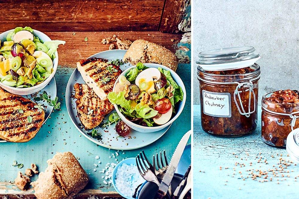 Ganz klassisch und immer wieder lecker kommt zum Grillvergnügen ein Steak mit Blattsalat auf den Tisch. Dazu servieren wir ein würziges Rhabarber-Chutney – unwiderstehlich köstlich und einfach lecker. Viel Spaß beim Grillen!